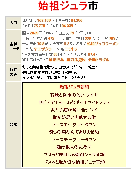 丹飛推薦の漫画を読んでた訳で 気づけばもう2時・・・・ 登場人物の父親の言葉を見て これは! と、思った訳だが 自分の趣味を要約してよくロリコンだとか言われますが_| ̄|○ 何か微妙に違うねんなぁ~と思ってたところ 小さい子だけじゃなく 普通の子も好きだから [ ロリコンでもある ]が正しいようです ・ ・ ・ ・ どっちにしてもダメだな俺_| ̄|○ と、そんな俺占いの脳内イメージ すっげ~ダメな香りが! 香ばしい!香ばしい過ぎるよ俺!_| ̄|○ そんな俺が通うべき高校? 男女比おかしいやろ! 校歌の帰宅と大胆の申し子って何する気やねん? そしてそんな人間を育む土地は、 石鹸と香水の香りとか・・・(==;) どこの風俗街やねんな・・・ ノースモークとかゆう時点で俺住めへんがな! キャラネームでこんなやったから 怖くて本名では、やってませんw 楽しすぎる占い教えてくれたセビさんありがとう! ウツだぜ_| ̄|○ |